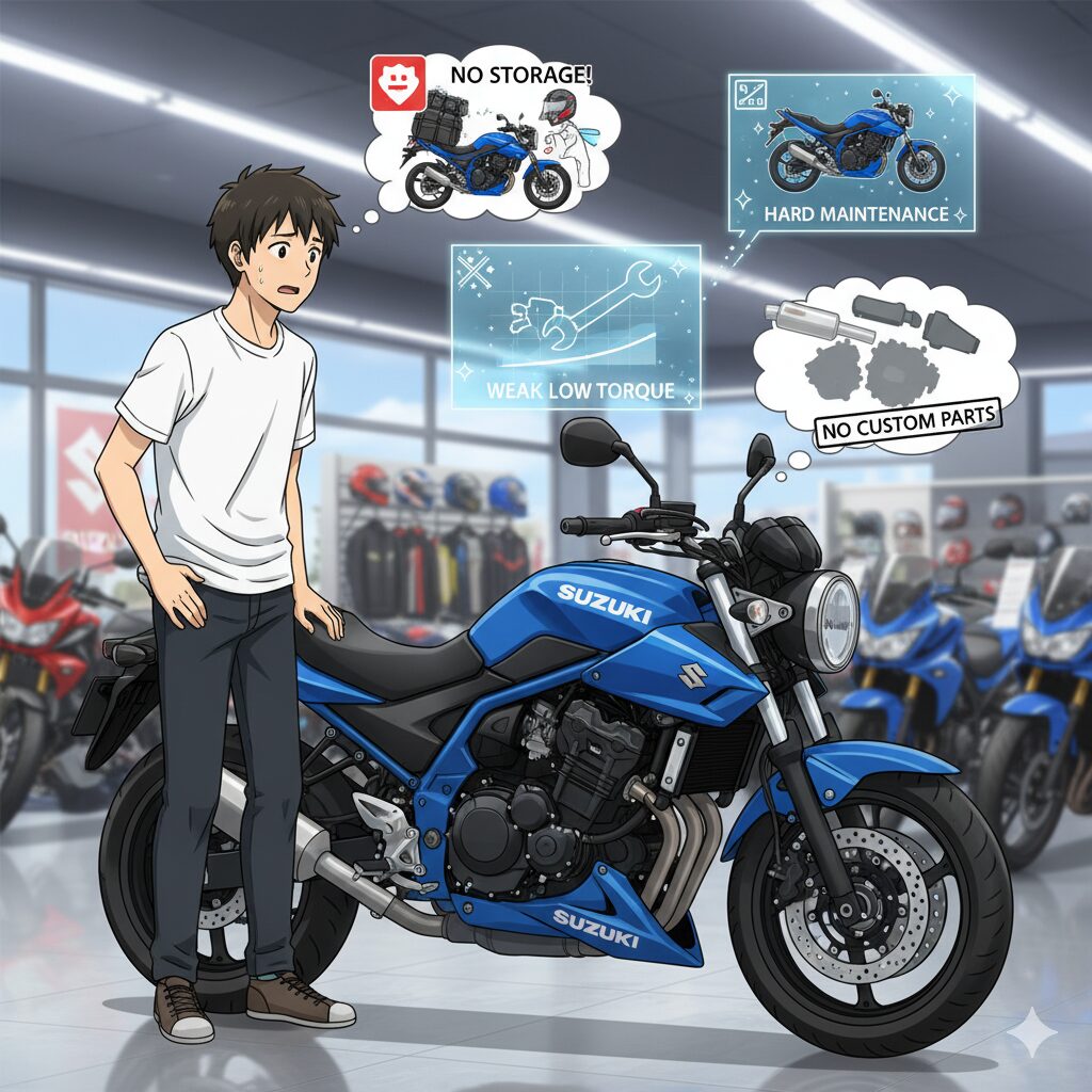 GSR400は魅力的なバイクですが、その特性を理解せずに購入すると「失敗した」と感じる可能性があります。購入後に後悔しないため、以下のポイントを事前に確認しておくことをお勧めします。