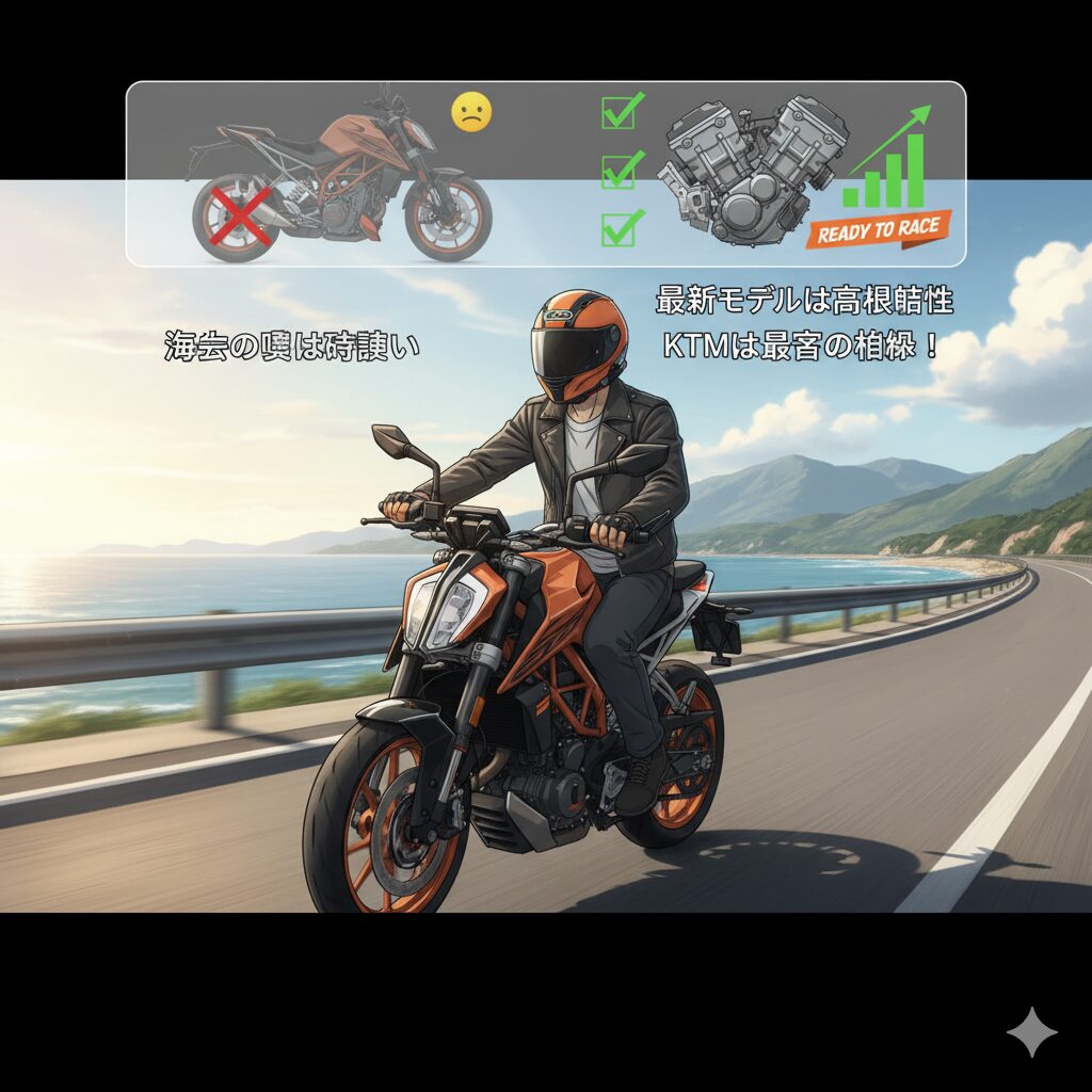 「KTMは壊れやすい」という評判は、主にインド生産モデルの初期トラブルと、日本車とは異なる「高性能を維持するためのメンテナンス要求」に起因するものだと分かりました。