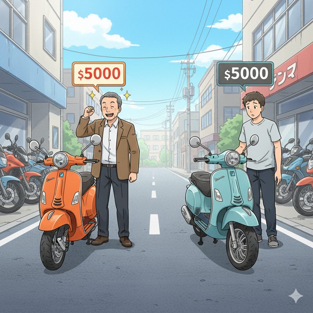 ベスパの場合、そのブランド力と鉄ボディの耐久性、そして世界的なマニアの存在により、中古市場でも価格が落ちにくく、限定モデルなどは購入価格を上回るプレミアが付くことさえあります。