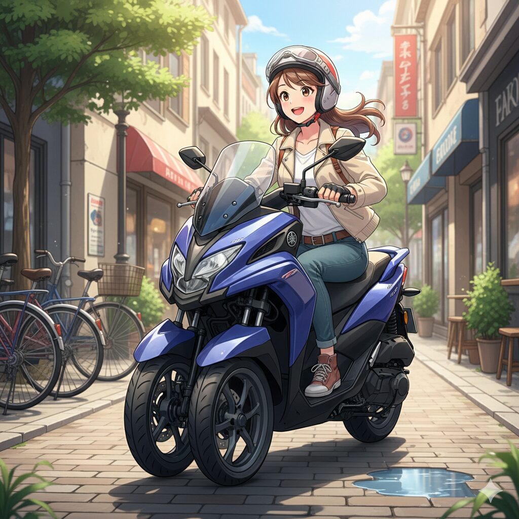 重量自体は約172kgと軽くはないのですが、停車時の安定感が高いため、グラつきにくく、心理的な重さを感じにくいのが特徴です。また、横風にもめっぽう強いため、高速道路の橋の上などでも安心して走れます。「絶対に転びたくない」「運転に自信がないけれどバイクで移動したい」という方にとって、トリシティ155は最強の選択肢になるでしょう。
