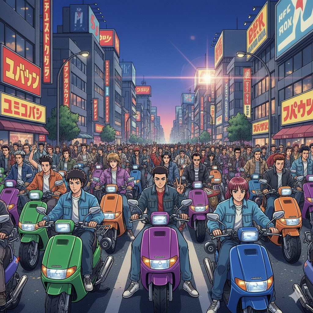 フュージョンの歴史は古く、初代モデルの発売は1986年に遡ります。当初は「おじさんが乗るバイク」という地味なイメージでしたが、1990年代後半からのストリートファッションブームにより、その評価は一変しました。若者たちがこぞってフュージョンをカスタムし、街中がビッグスクーターで溢れかえる社会現象が起きたのです。