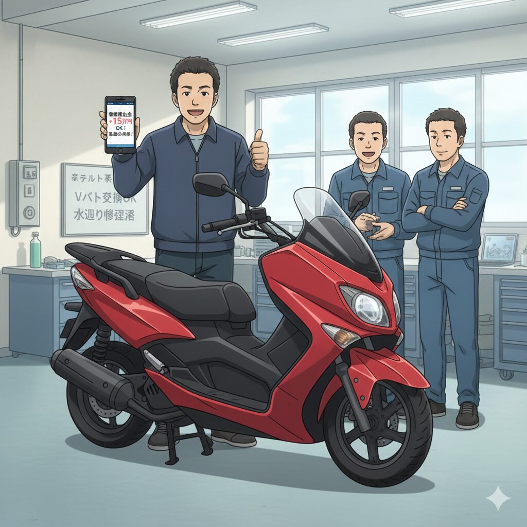 バイクショップに依頼すれば、部品代は数千円でも、工賃だけで3万円〜5万円かかるケースも珍しくありません。車両価格が5万円程度のバイクに、それと同等の修理費がかかるリスクがある。この「見えない負債」を抱えていることが、フュージョンの市場価値を大きく押し下げているのです。